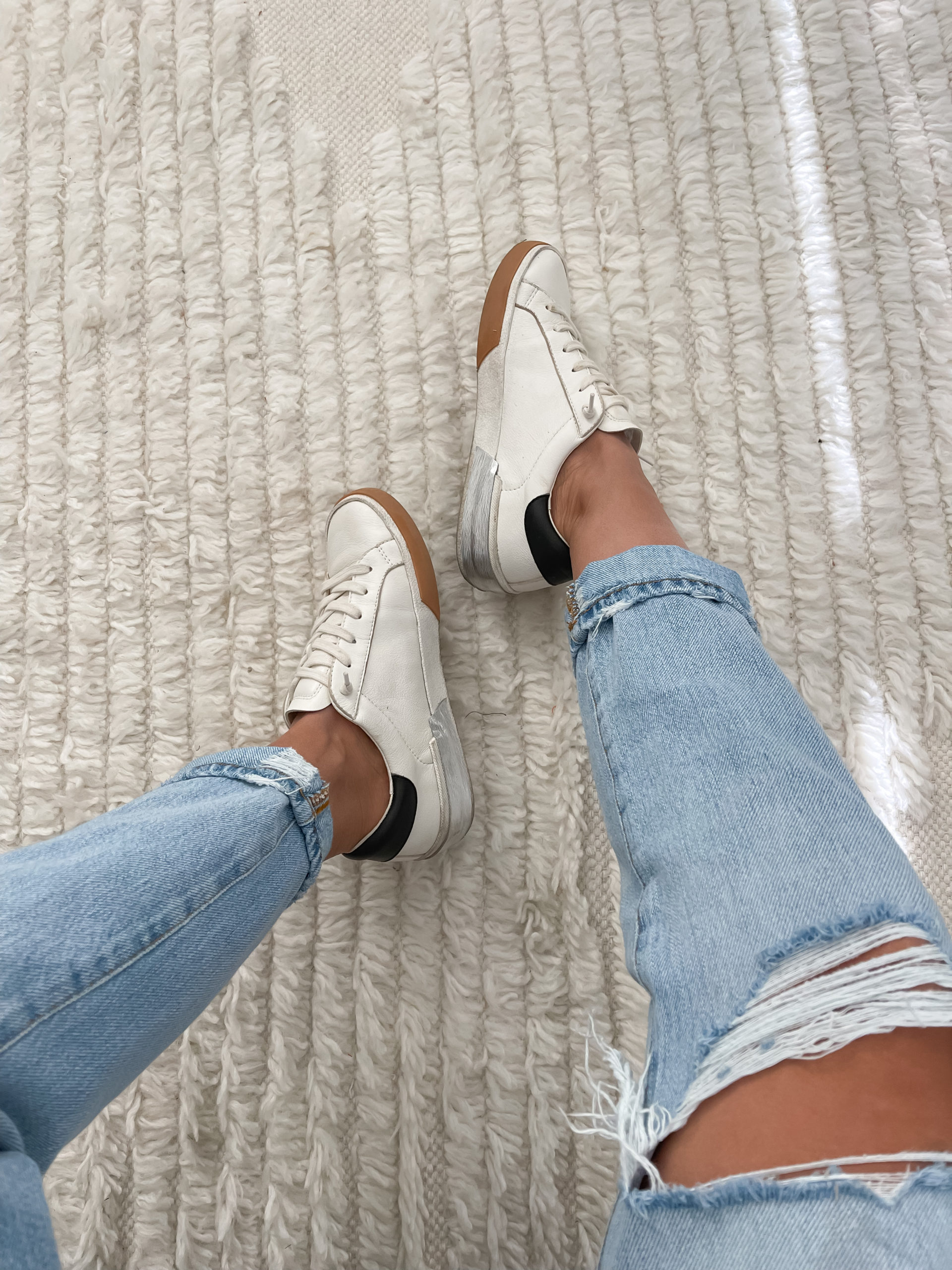 These sneakers pair perfectly with either jeans or dresses. I love that they’re a simple white pair that go with everything but have a little something unique to them. They run true to size & are at a great price point!
