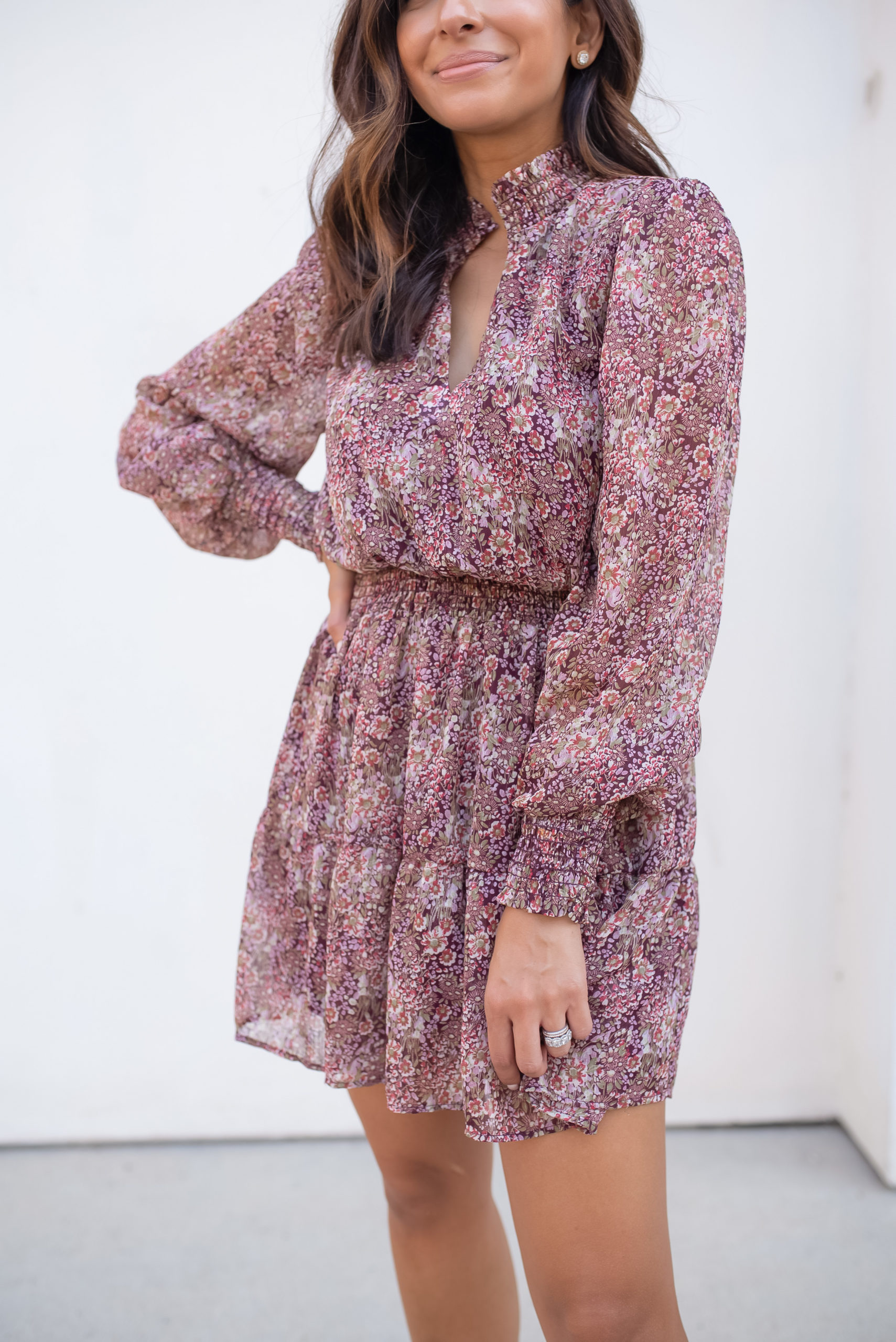 This dress is THE perfect dress for fall! It will be such a great option for fall family photos or to dress up with a pair of heels for any upcoming events! It comes in three color options – autumn gold floral, burgundy floral, and stone. The stone color would even be a great shower option for brides-to-be. I love all 3 color options and they can easily be styled with so many different pairs of shoes all season long. The smock style waist and sleeve cuff make it easy to adjust to your own liking, also making it petite friendly. I’m wearing the XXS in this dress. You can shop it here!