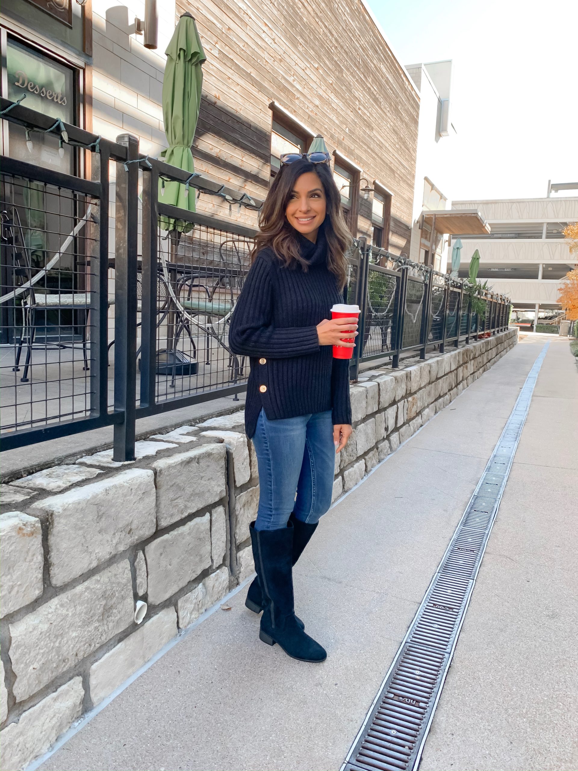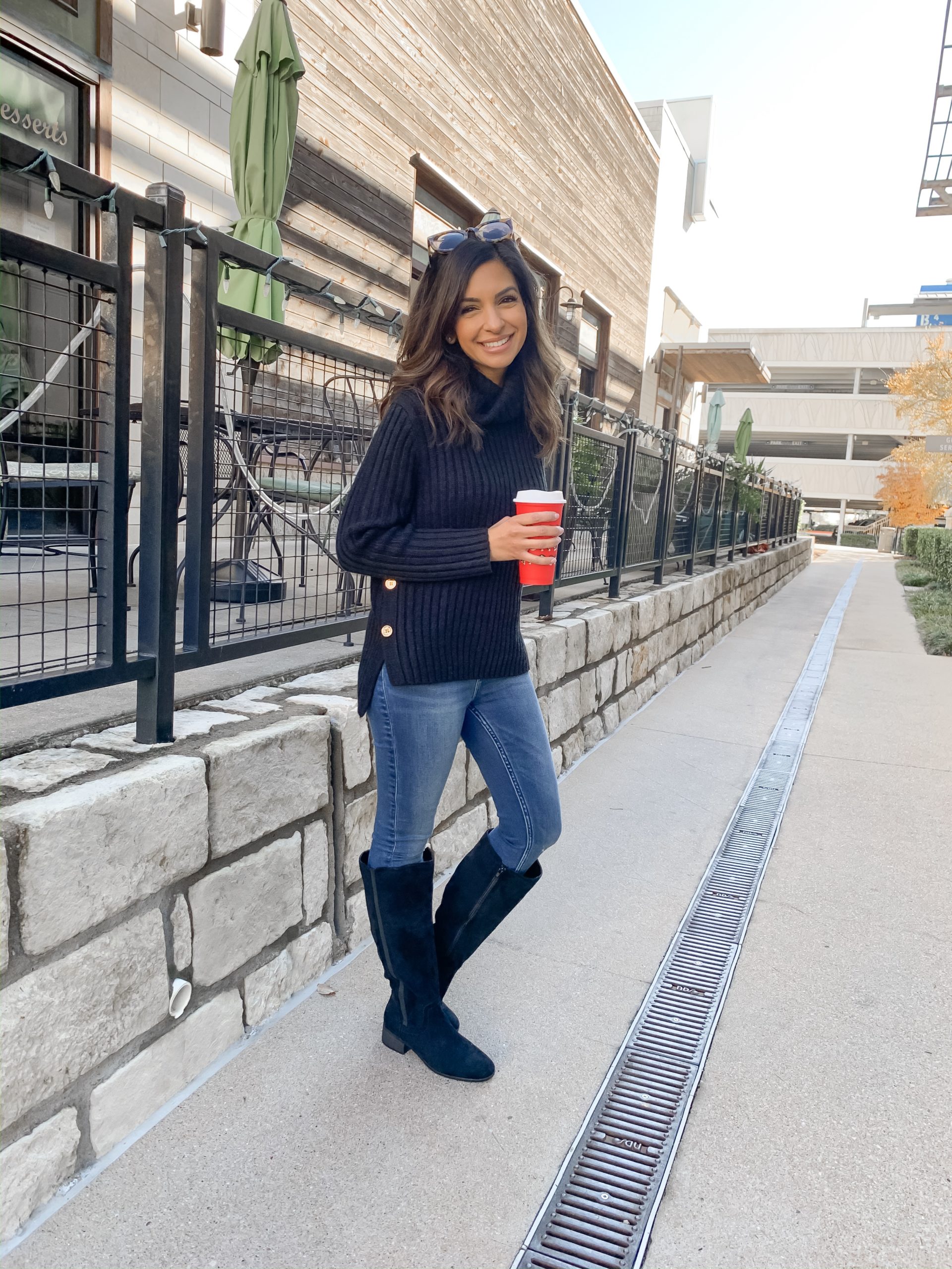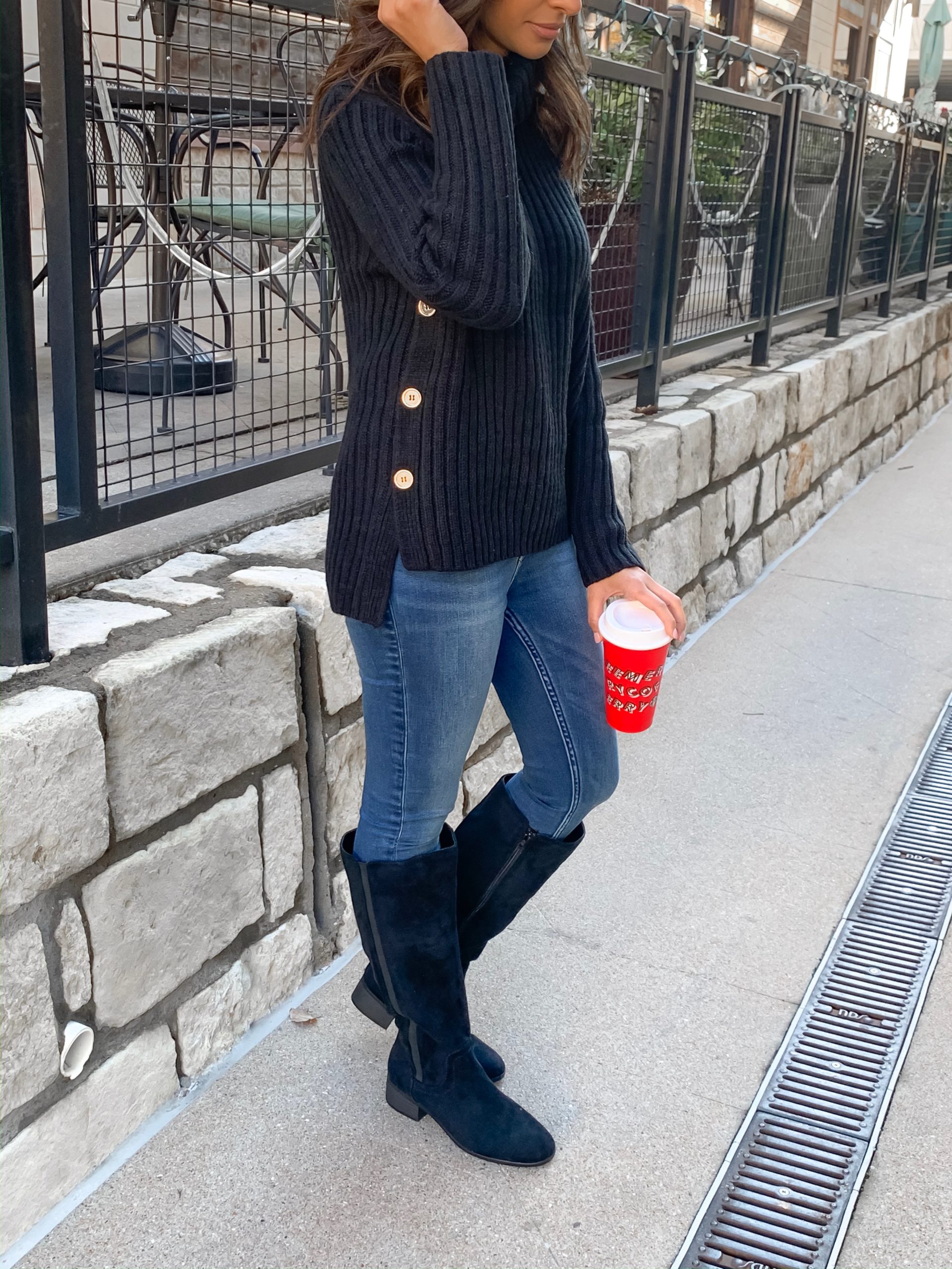 This sweater is from one of my favorite brands at Walmart and the gold button detail is so pretty! I ordered the black and the ivory. You girls have also been asking me for a good pair of knee high boots and to be honest I haven’t found any that I really loved – until now! These are SO gorgeous in person, I was blown away when I first put them on! I got my true size.