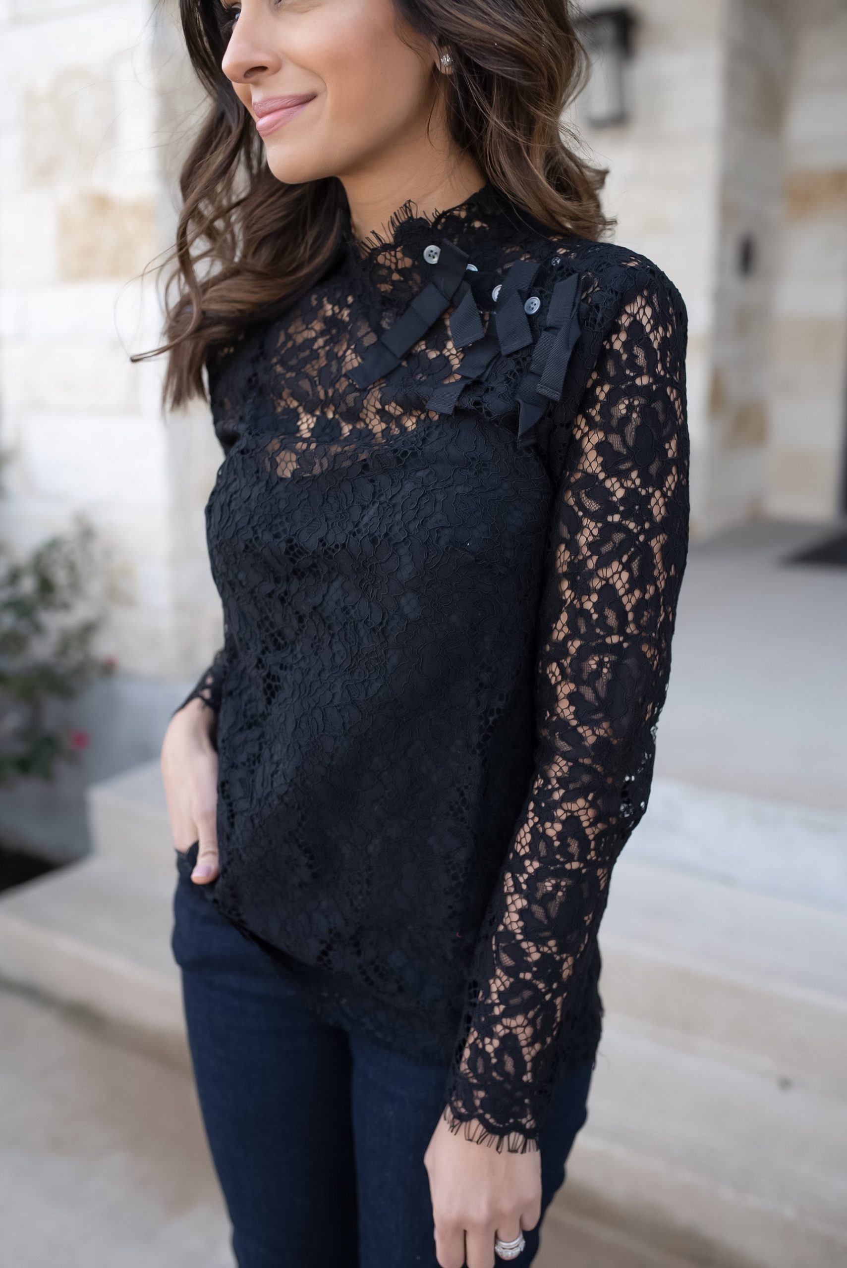 Lace top · This top is the perfect holiday party top. Pair it with some dark skinny jeans and you’re good to go. I’m wearing 00. It also comes in a few other color options, all so perfect for holiday events!