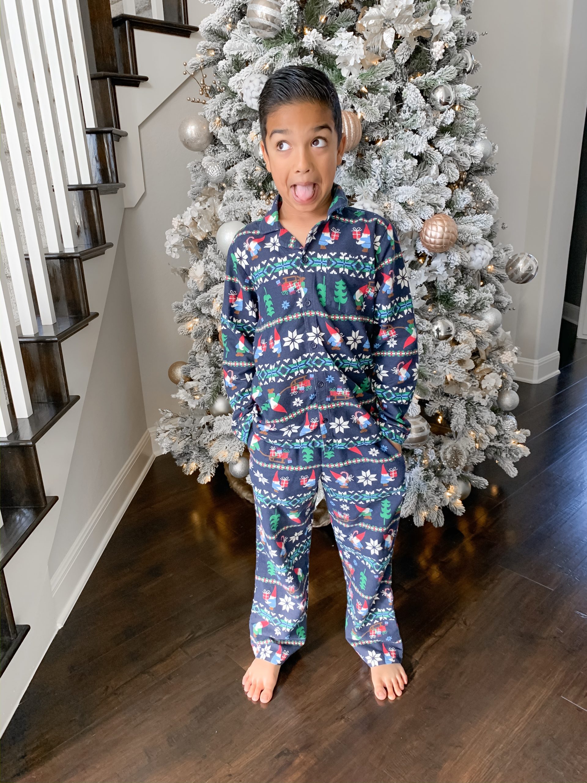 Another reason we buy Hannas year round is because of the amazing quality. They last longer than any others and are super, SUPER soft! I’m going to link some of our holiday favs here! And, P.S. – Nazim loves them too, but we needed a photographer to take these pics, haha! Happy Holiday PJ shopping!!