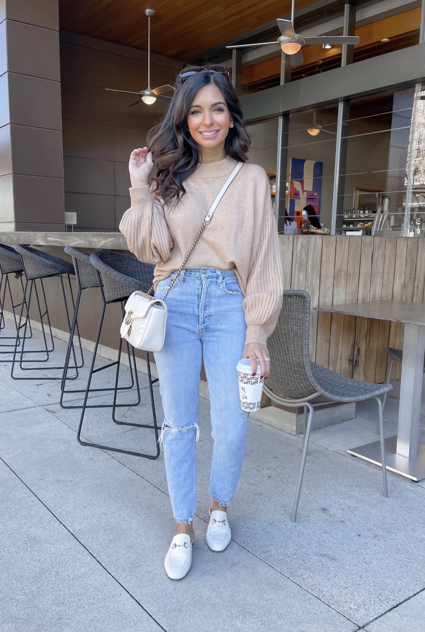 I grabbed this balloon sleeve sweater via curbside pickup at Nordstrom & I absolutely love it! The sleeves are so fun & the material is super soft. It runs true to size and I wear the extra small. I always love pairing this color with light or dark denim & it’ll also look great with white as we transition into Spring. I can wear this front tucked into a pair of joggers with sneakers, dress it up with a suede skirt and knee high boots, or wear it everyday casual like I did today!