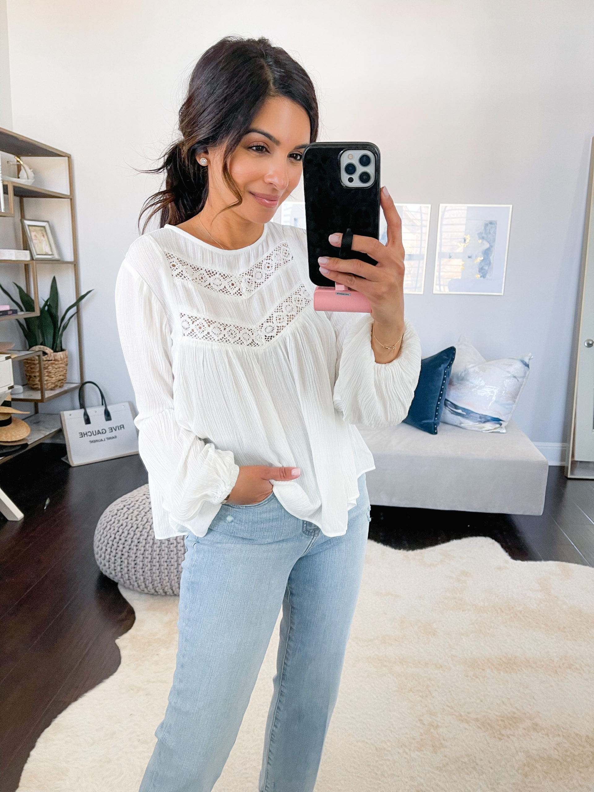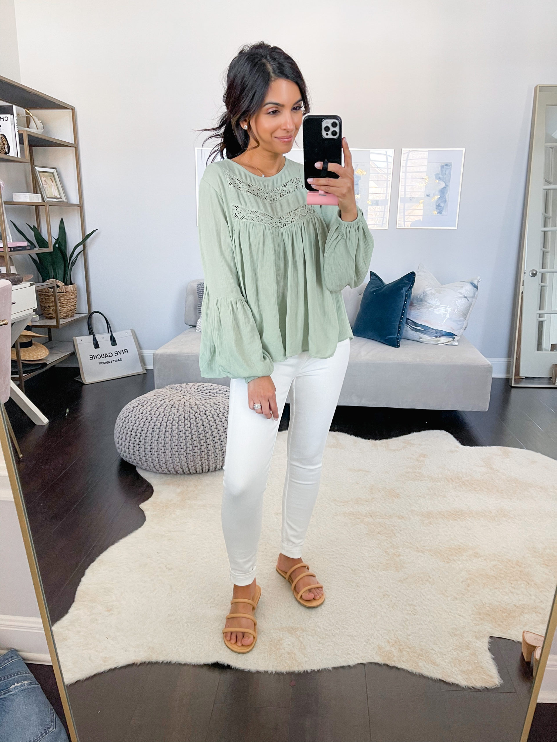 I LOVED this pretty top so much I got it in this gorgeous sage green and the white. It’s such a classic & will look great paired with jeans, shorts, & skirts too! I get my true size in the pieces below.