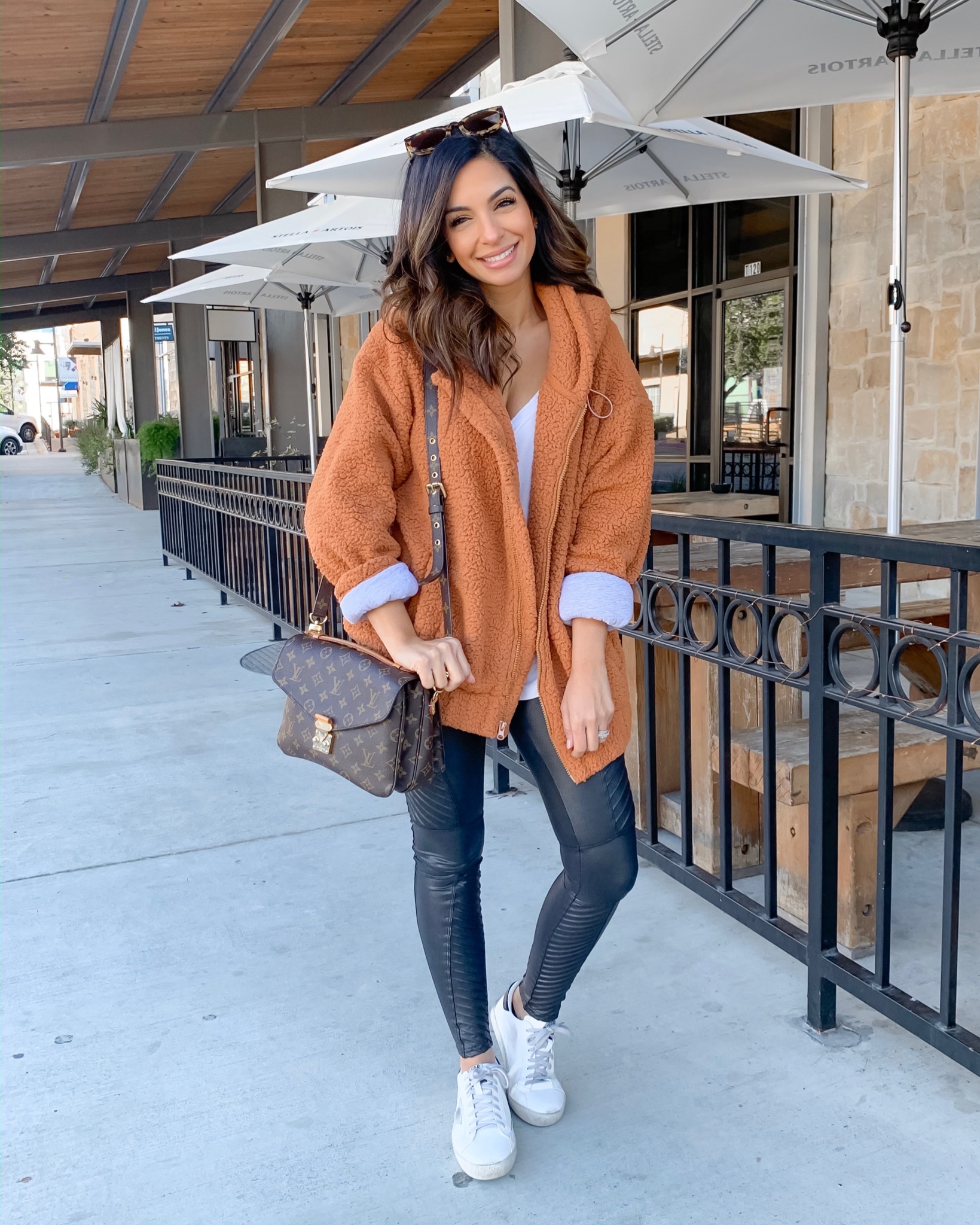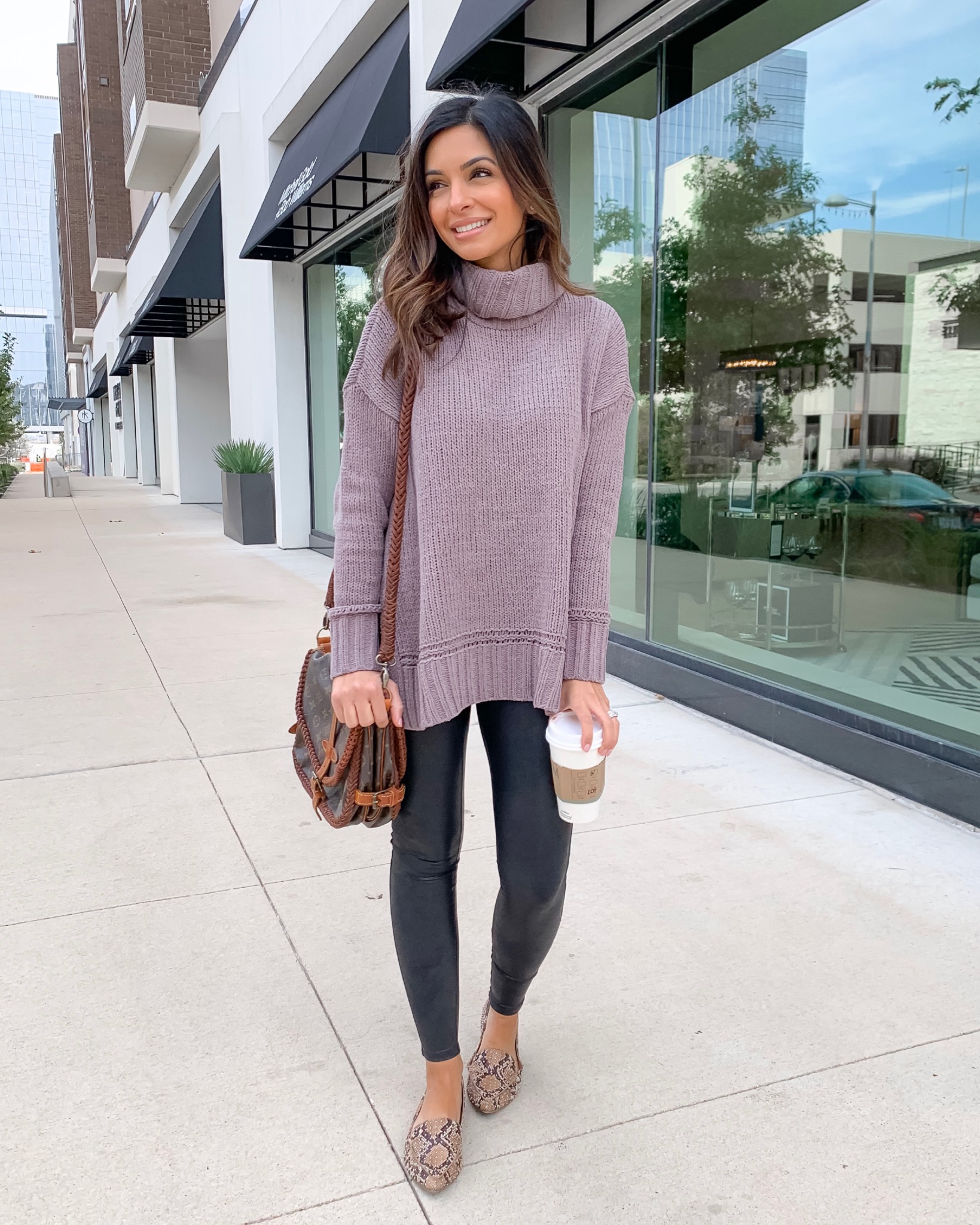 4. Leopard faux leather leggings · I knew y’all would love these! Our favorite leggings in leopard print, what’s not to love!? I size up one size to a small and wear the petite length.